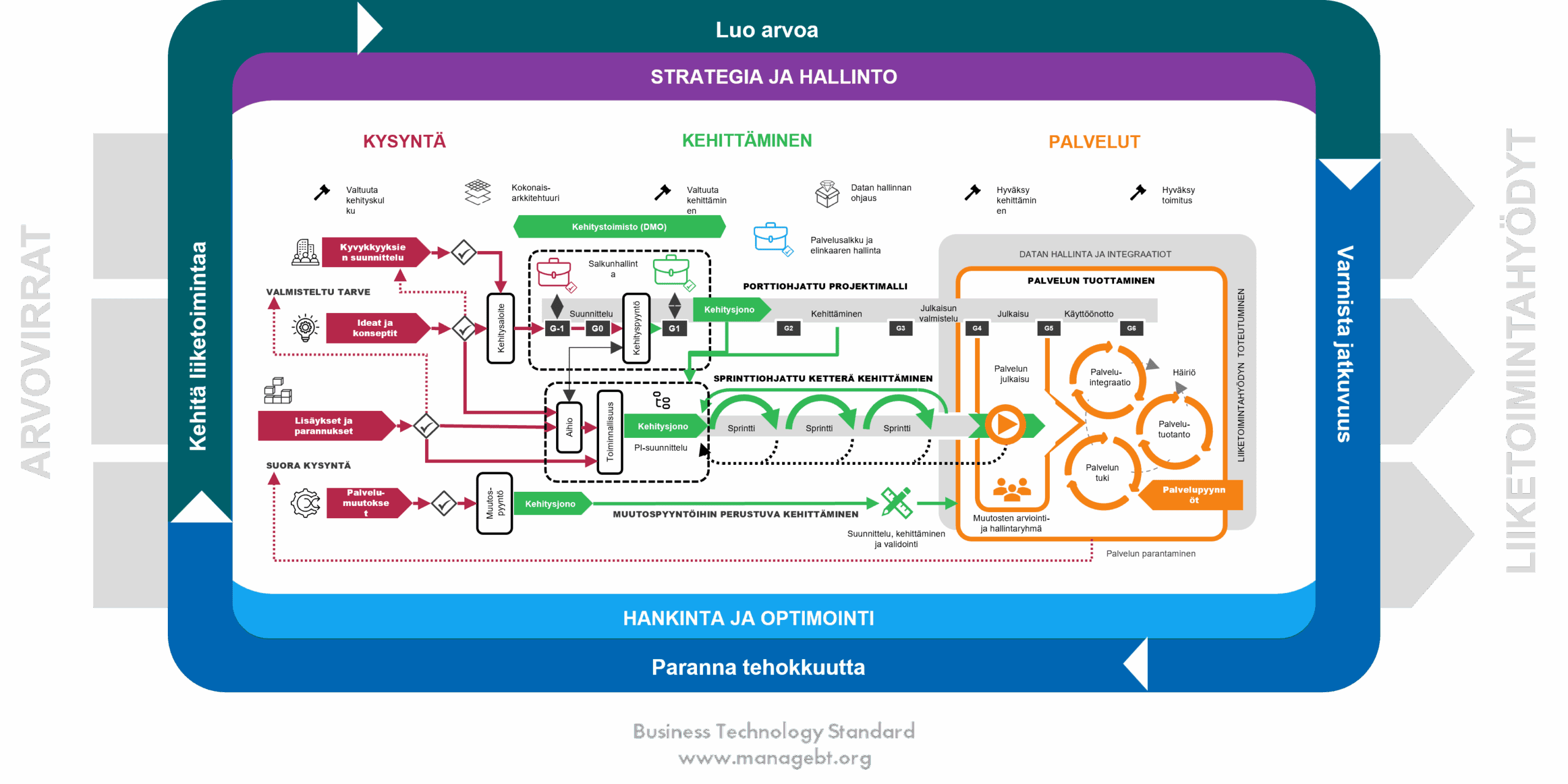 BT-malli on kokoelma parhaita käytäntöjä. Mallia on ollut kehittämässä yli 50 BT Forumin yhteisöön kuuluvaa, johtavaa Pohjoismaista yritystä ja julkisen sektorin toimijaa sekä yliopistoa. Malli on ollut käytössä maailmanlaajuisesti vuodesta 2009 lähtien.
